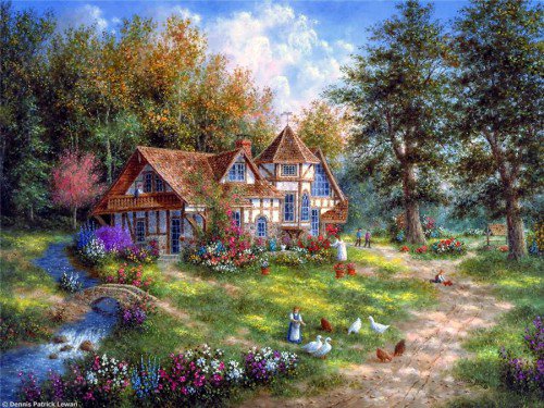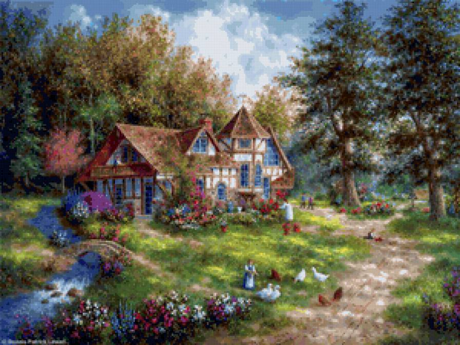 Теги: цветы, дорога, лестница, лето, пейзаж, домик.