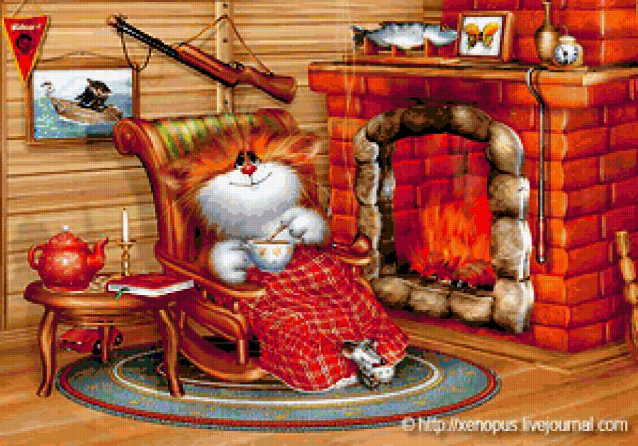 Комментарии к схеме вышивки «Серия "Рисованные коты" У камина» (№169974)