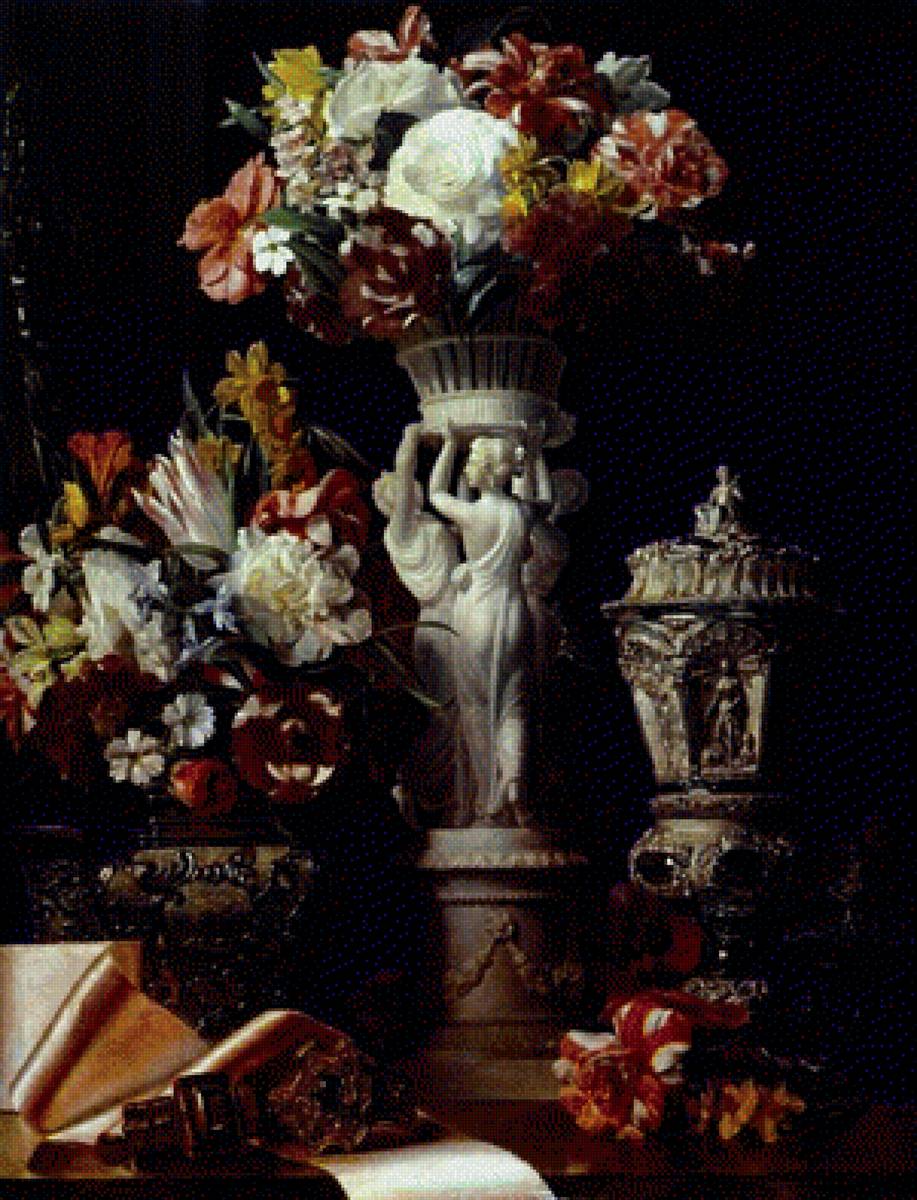 Схемы вышивки, похожие на «букет и статуэтка» (№1709403) по сюжету