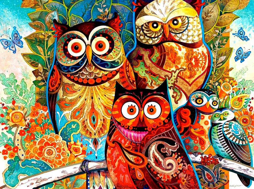 Теги: совы, птицы, хищники, живопись.