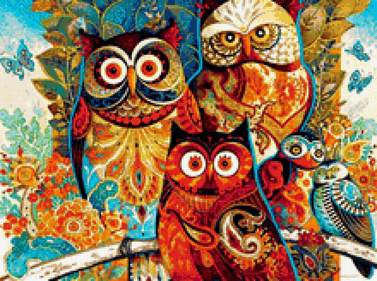 Схема вышивки «Совушки. Коллаж.» Совушки. Коллаж.