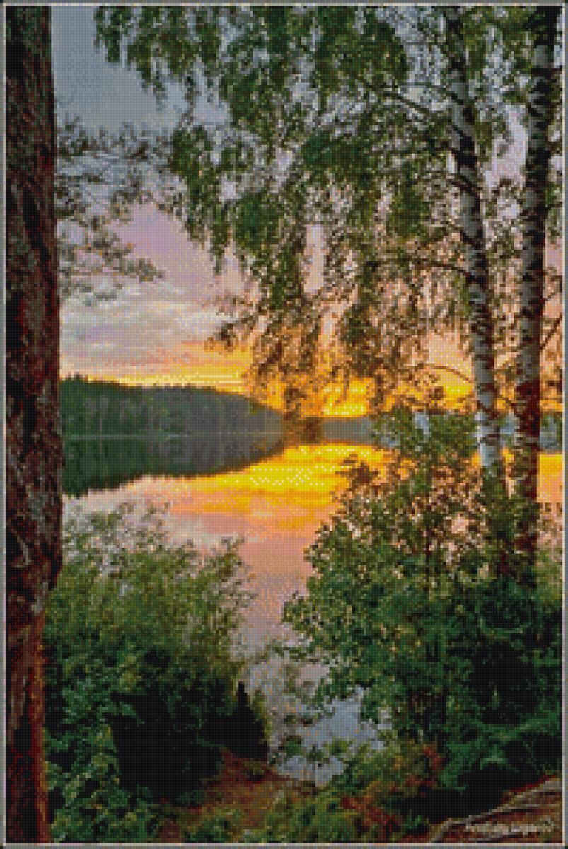 Схема вышивки «закат на озере» (№1751009)