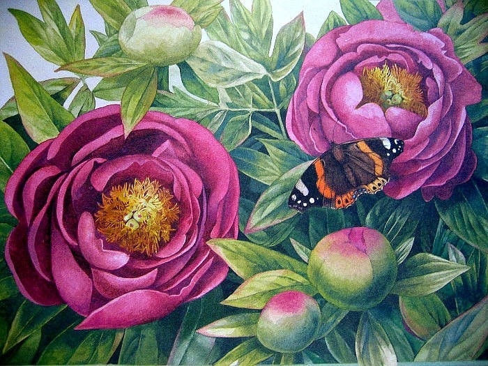 Теги: живопись, картина, оксана кравченко, пионы, цветы.