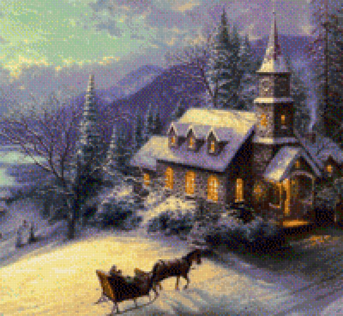 Схема вышивки «Зимний ночной пейзаж» (№1813008)