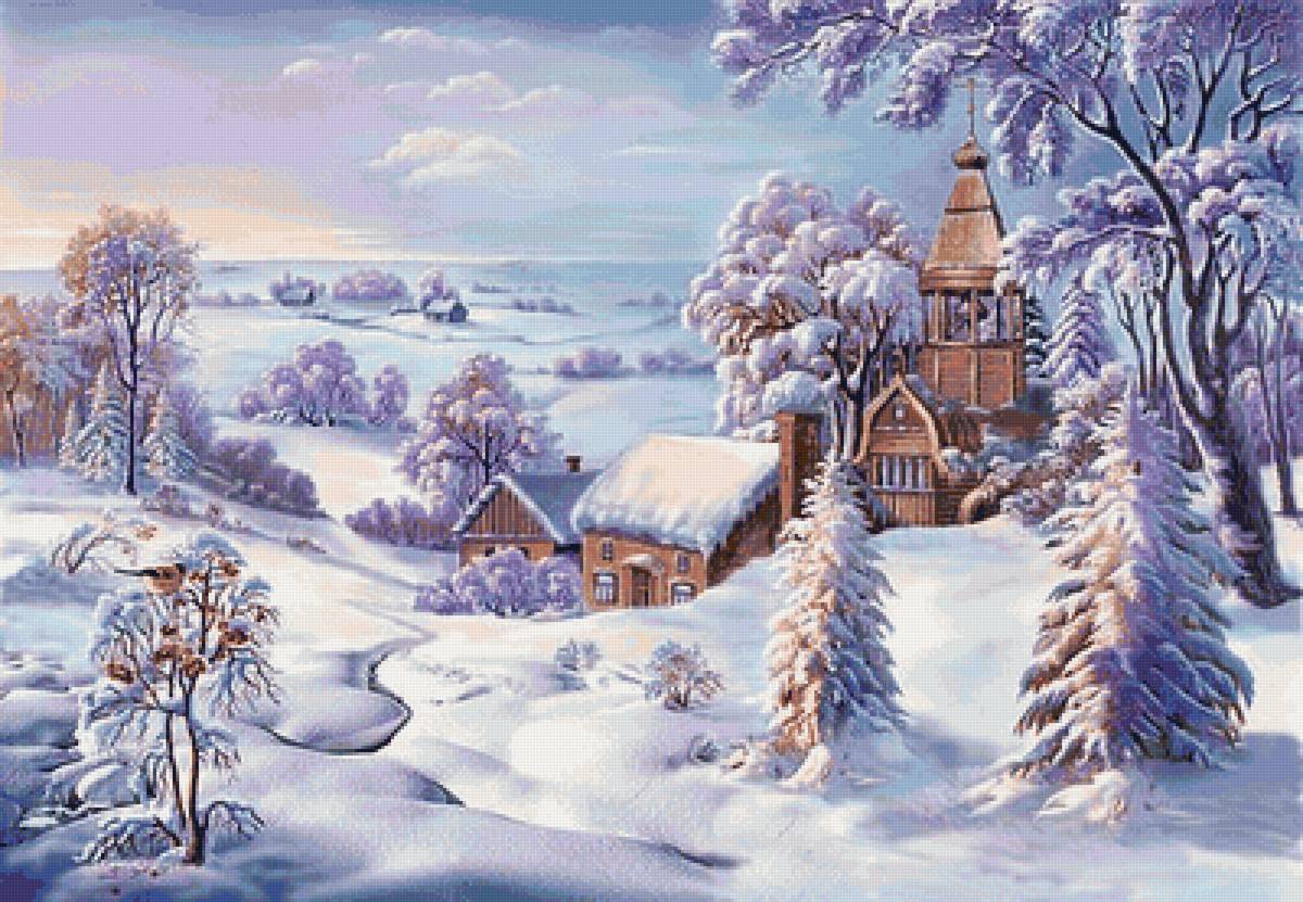 Теги: лошади, зима, снег, домик, ночь.