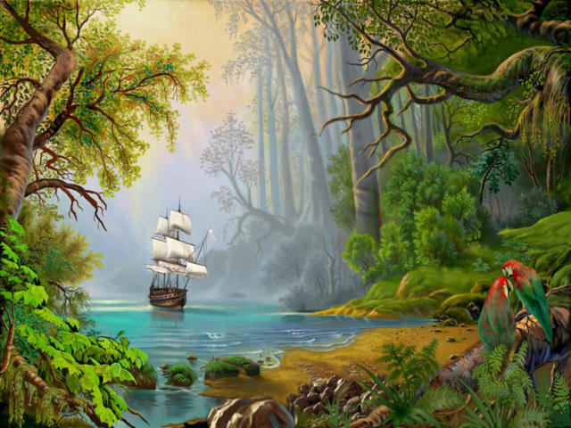 Теги: парусник, попугай, природа, рай, сад, гавань.