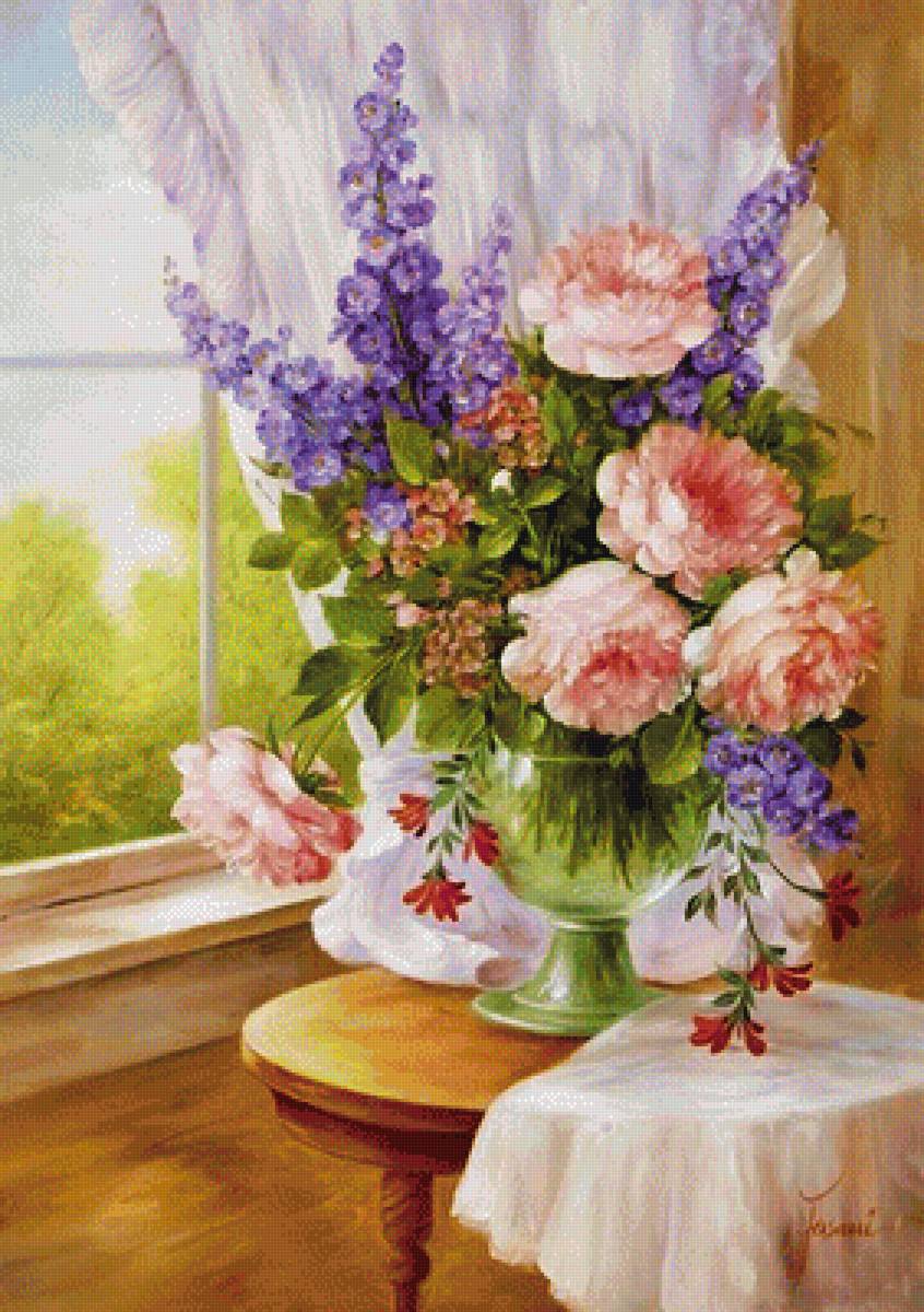 Схема вышивки «okno,kvety» (№1862181)