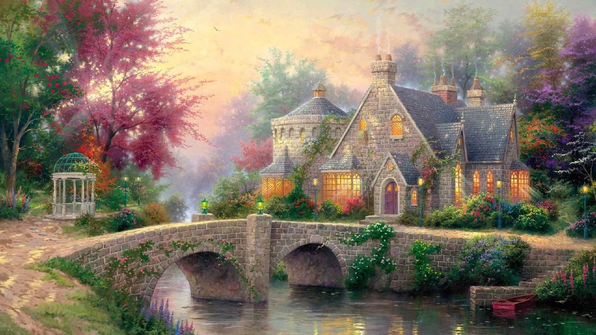 Теги: картина, река, дом, мост, парк, сад, пейзаж, город, природа.