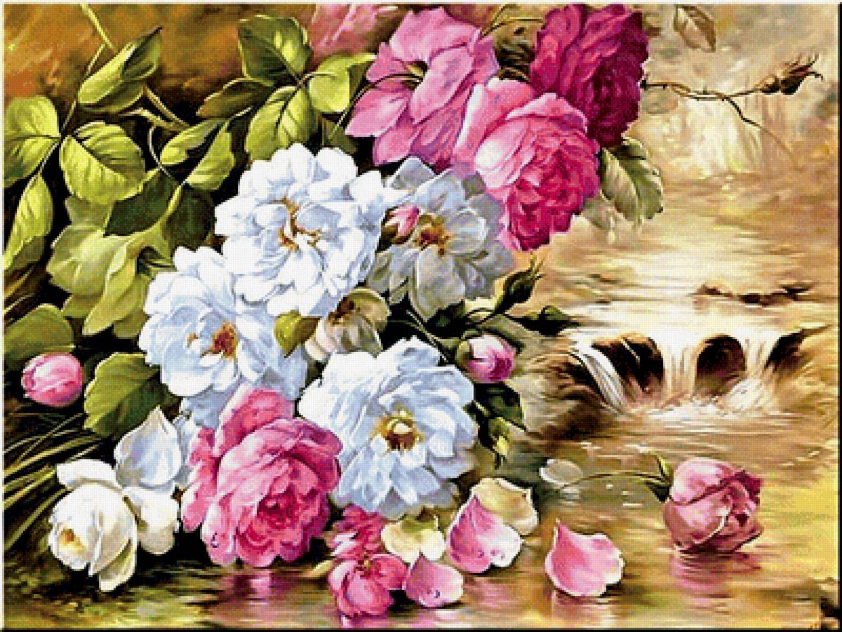 Теги: фиалка, роза, розы, фиалки, панно, белые розы, цветы.