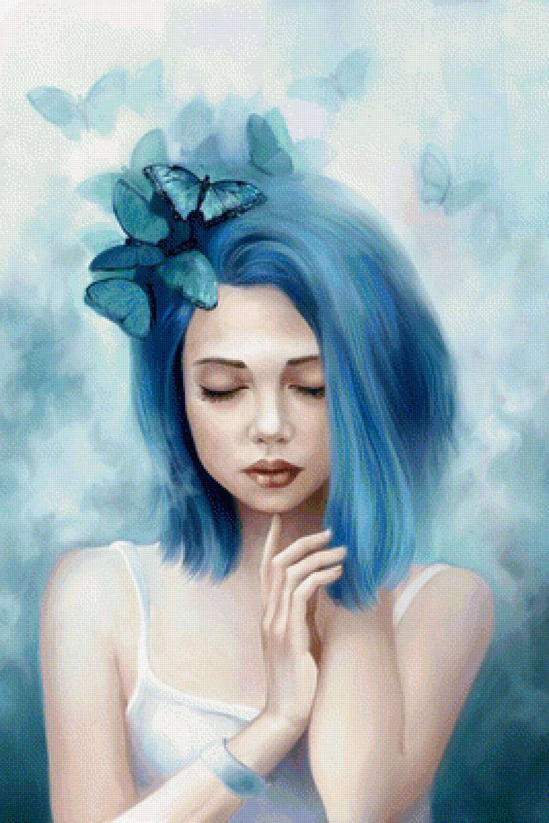 Схема вышивки «Девушка в синем» Девушка в синем