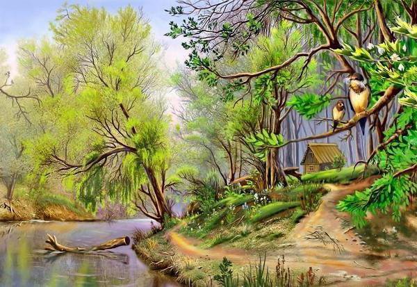 Теги: березы, пейзаж, природа, птицы.