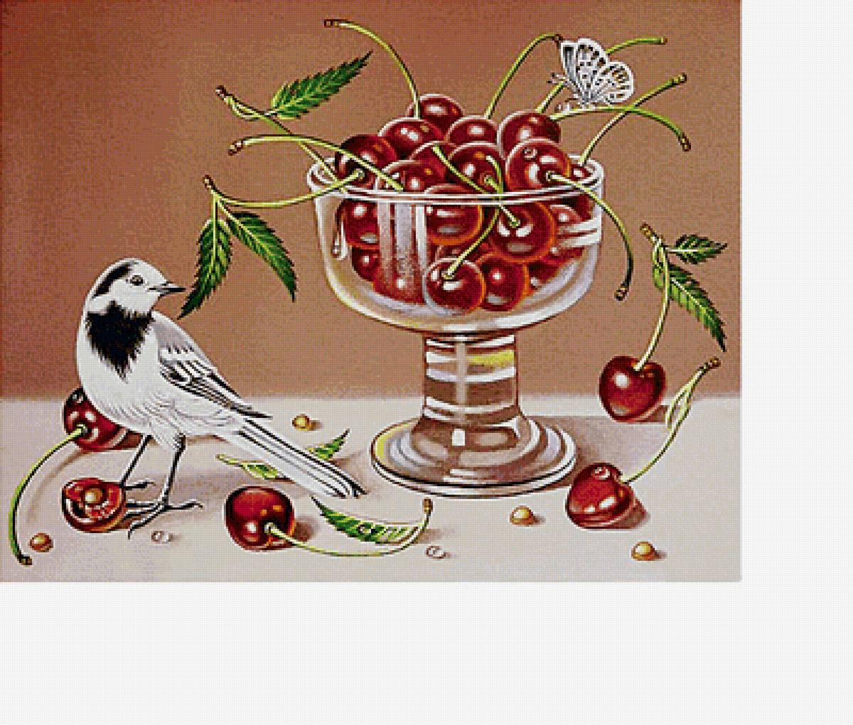 Схема вышивки «Птица и вишня» (№1905741)