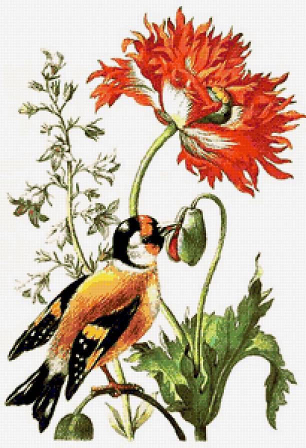 Схема вышивки «Птичка и цветок» (№193254)