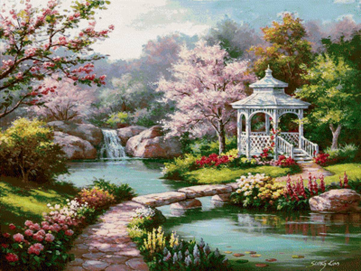 Теги: природа, беседка, tomas kinkade.