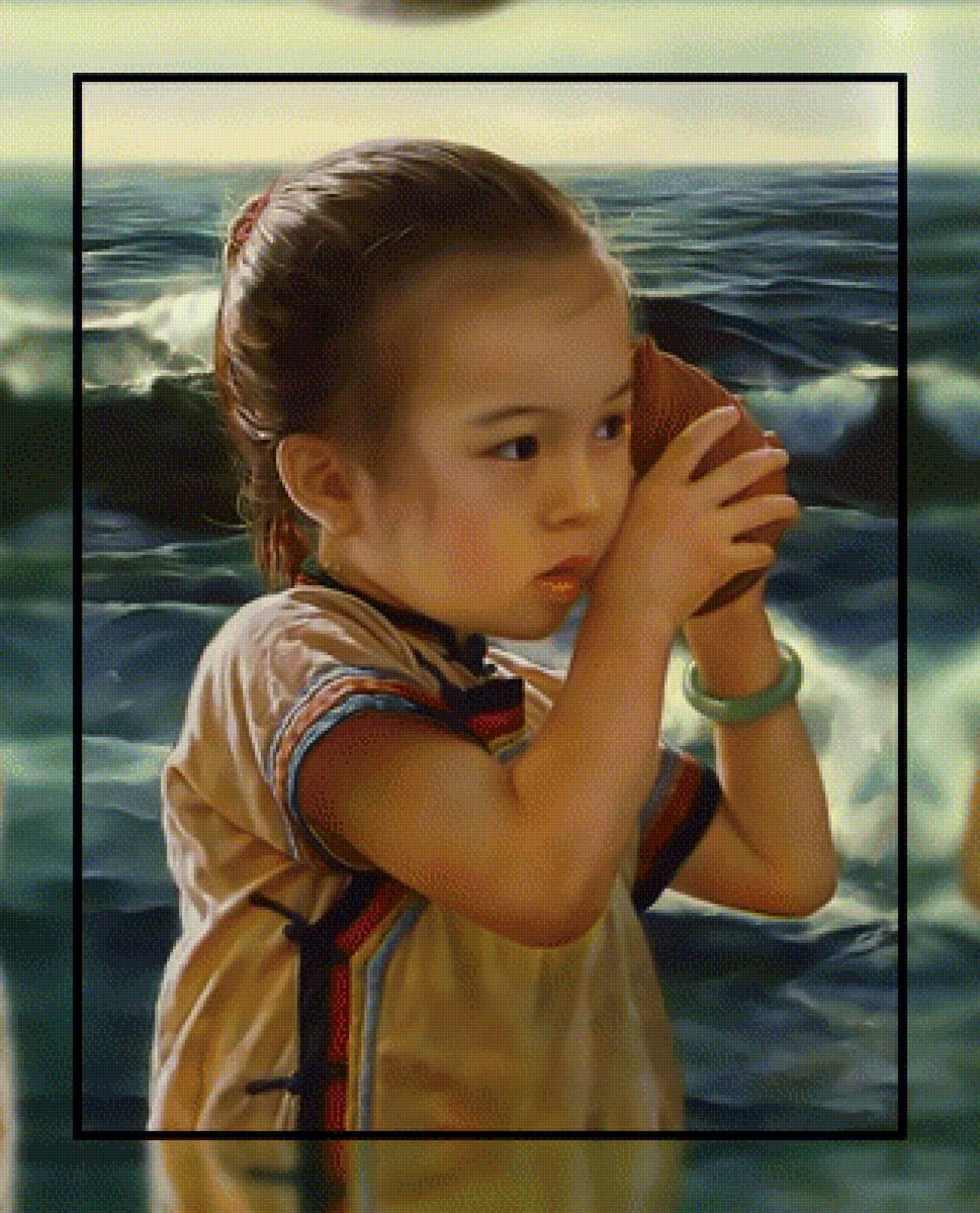 Схема вышивки «Девочка слушает море.» (№1937222)