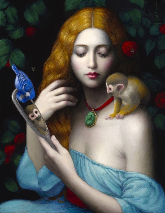 Схемы вышивки, похожие на «Девушка с обезьянкой и зеркалом» (№1996488) по сюжету