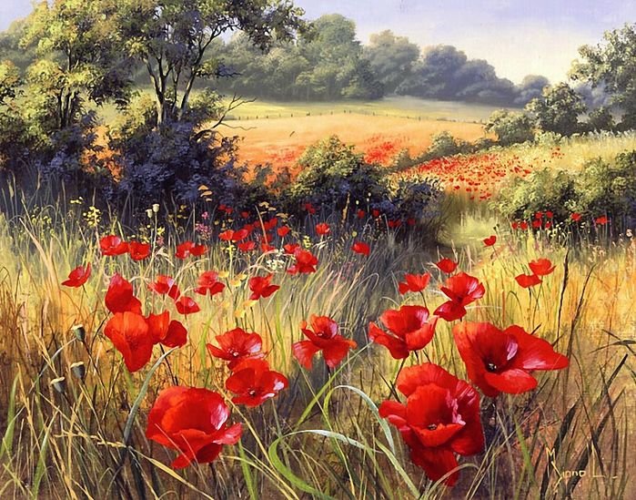 Схемы вышивки, похожие на «Маки на лугу» (№2029344) по сюжету