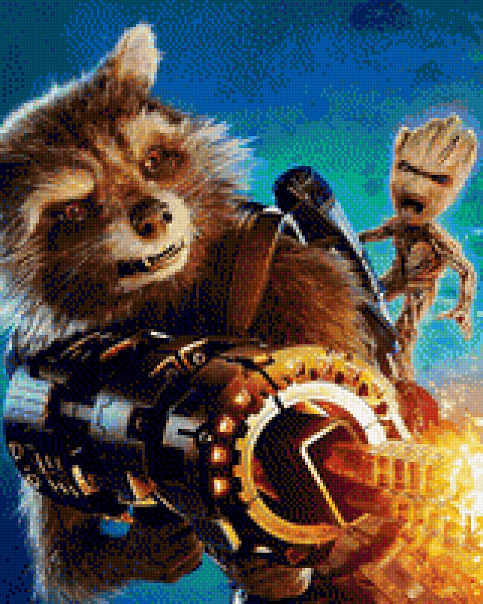 Схемы вышивки, похожие на «Ракета и Грут» (№2052514) по сюжету