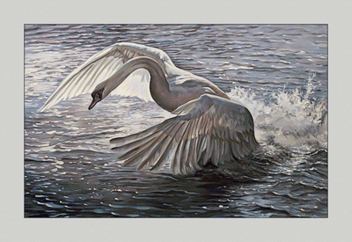 Схема вышивки «Взлетающий лебедь - монохром» Взлетающий лебедь - монохром