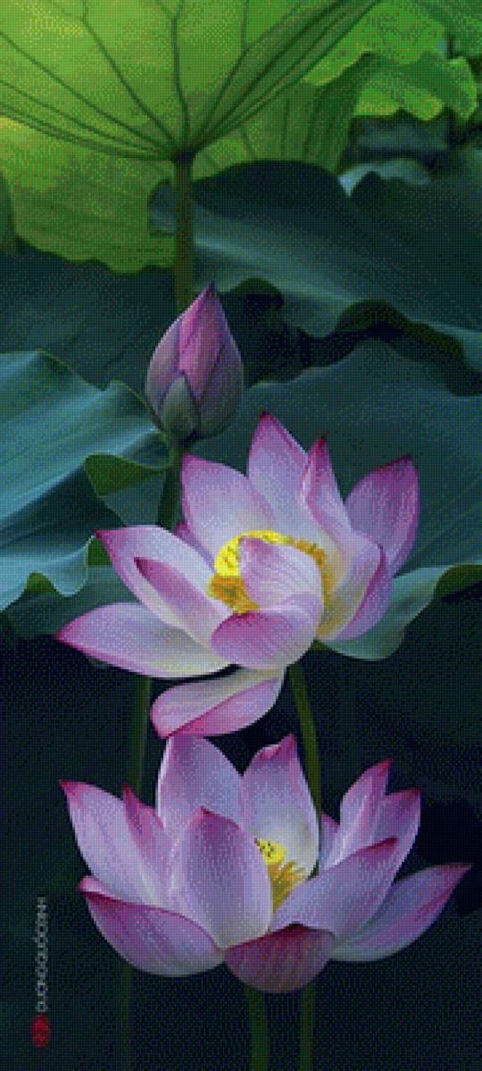 Схемы вышивки, похожие на «Розовые лотосы, панелька» (№2087865) по сюжету