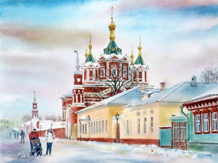 Теги: нежная акварель, особняк, город, дом, городской пейзаж, улица.