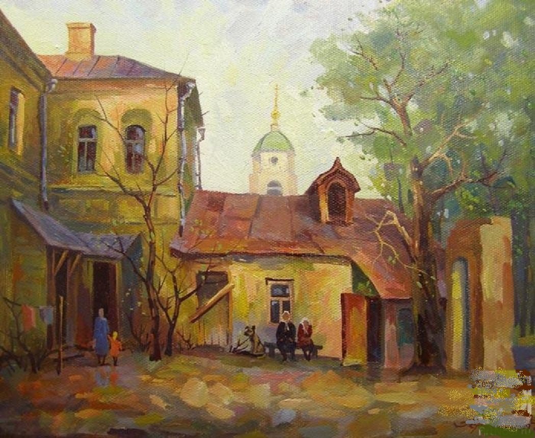 Теги: животные, двор, деревня, картина.
