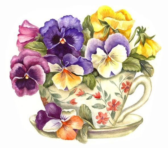 Теги: живопись, букет, анютины глазки, цветы.