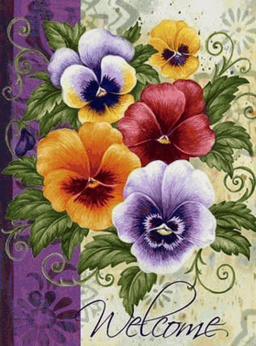Теги: анютины глазки, букет, цветы, живопись.