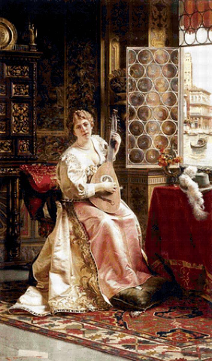 Схема вышивки «дама с лютней» (№2282033)