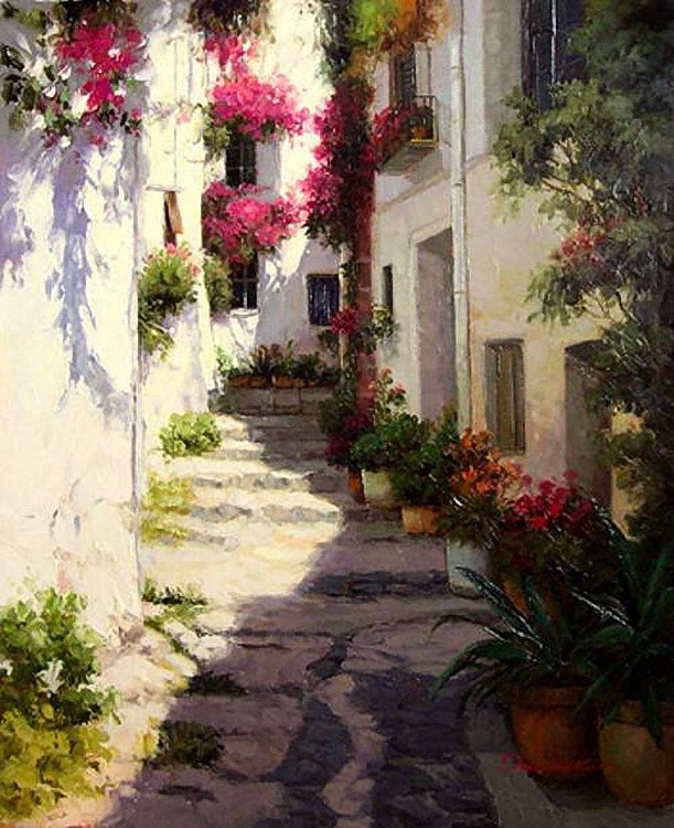 Теги: картина, люди, улица, город, городской пейзаж, живопись.