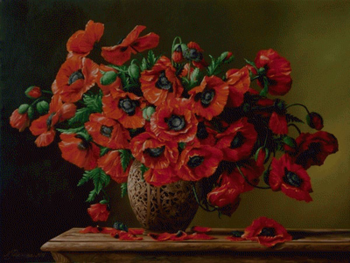 Теги: цветы, ваза, букет, натюрморт, картина.