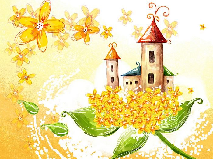 Теги: цветы, пейзаж, лето, домик, дом, природа.