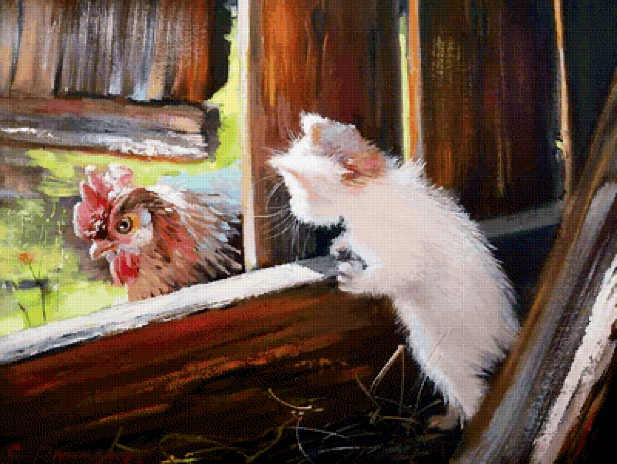 Схема вышивки «котята  у пруда» котята у пруда