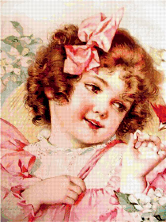 Схема вышивки «Девочка винтаж дождь» Девочка винтаж дождь