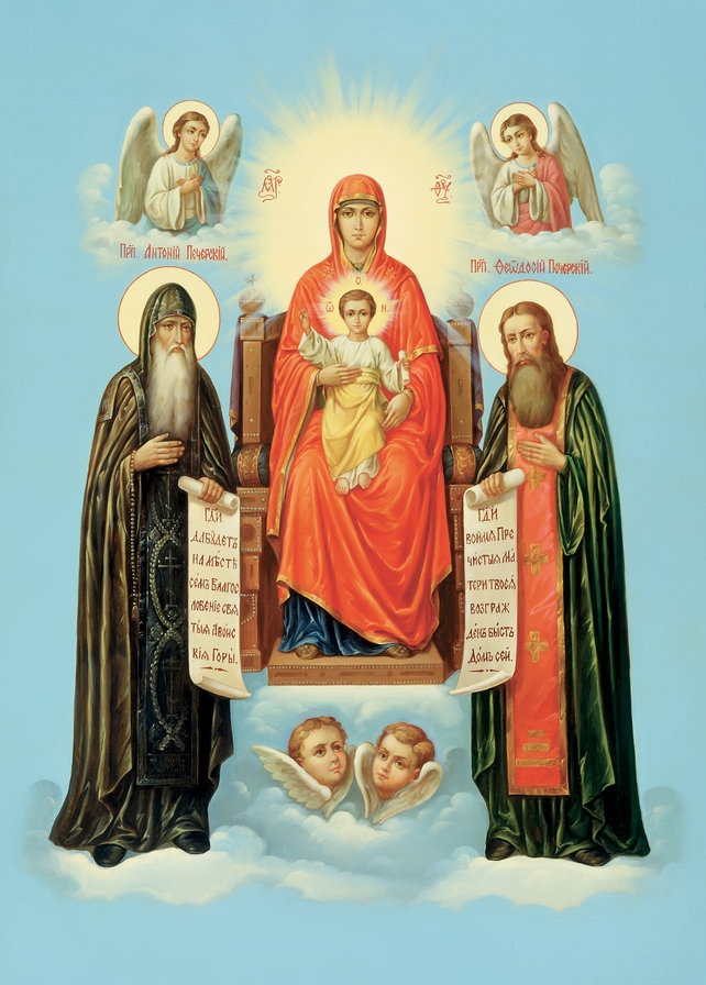 Печерская икона Божьей матери с предстоящими Антонием и Феодосием Печерскими