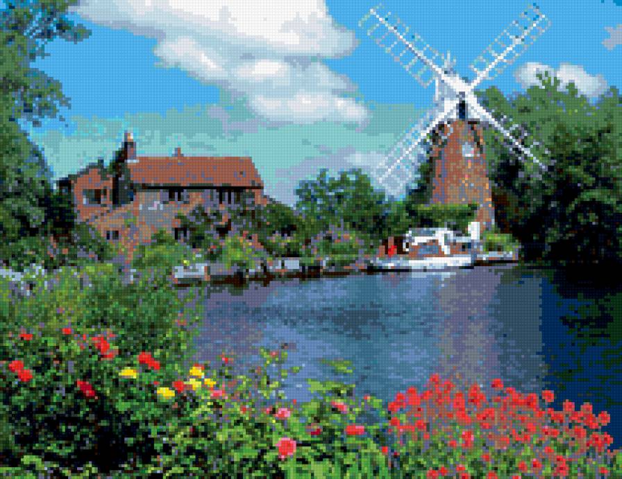 Теги: мельница, tomas kinkade, природа.