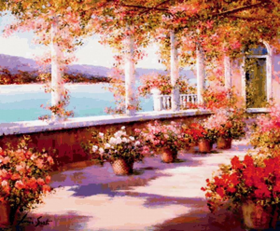 Схемы вышивки, похожие на «Терраса с цветами» (№265205) по сюжету