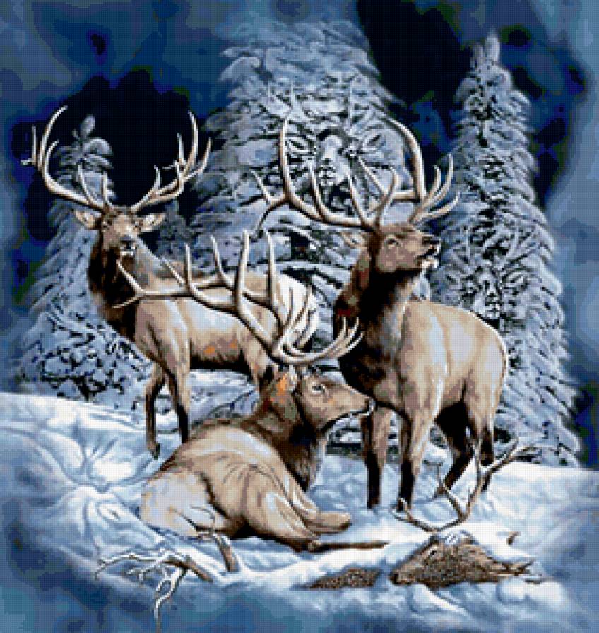 Схемы вышивки, похожие на «олени 3д» (№270621) по сюжету