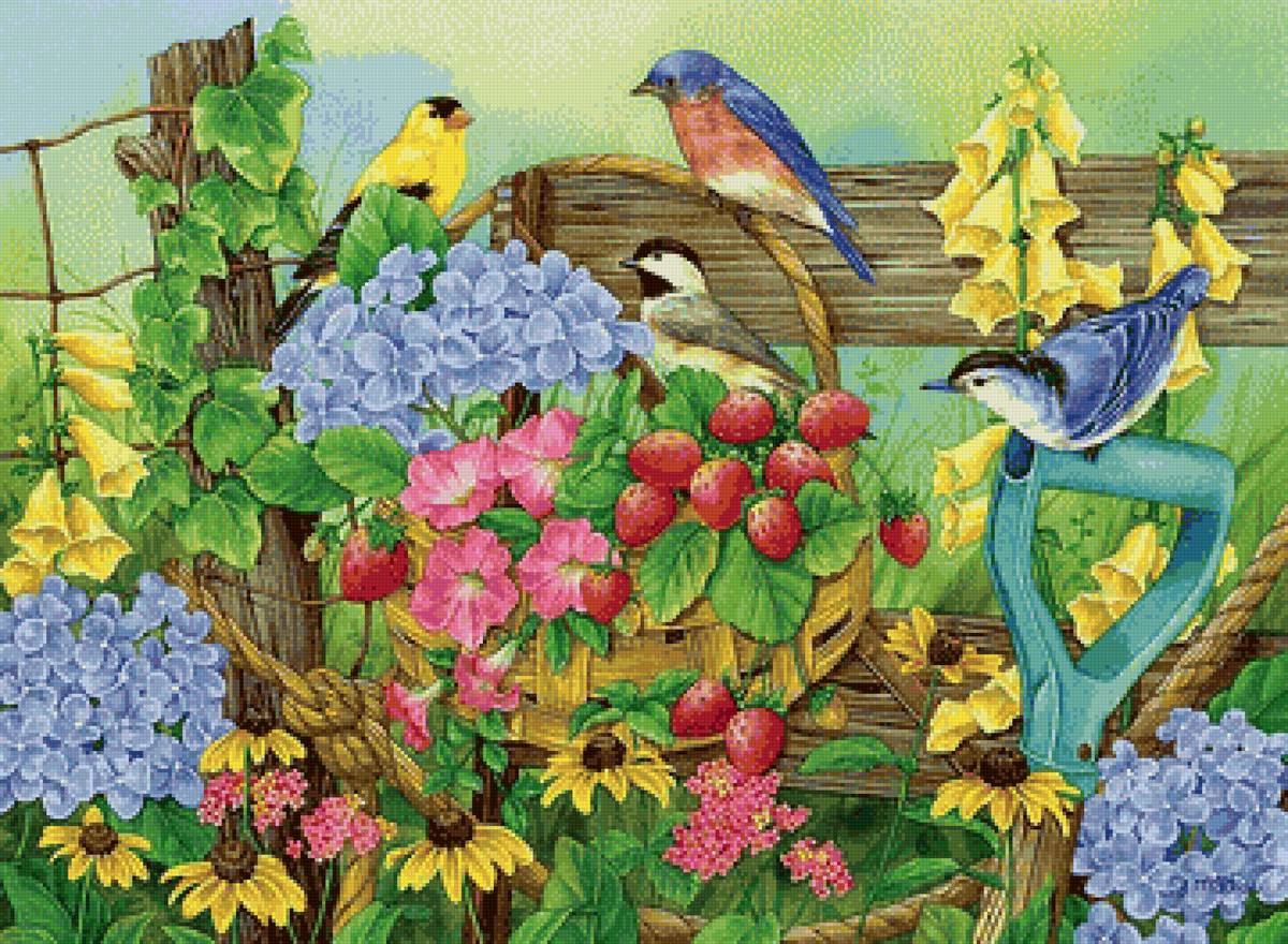 Схема вышивки «птицы, сад, цветы» (№2780282)