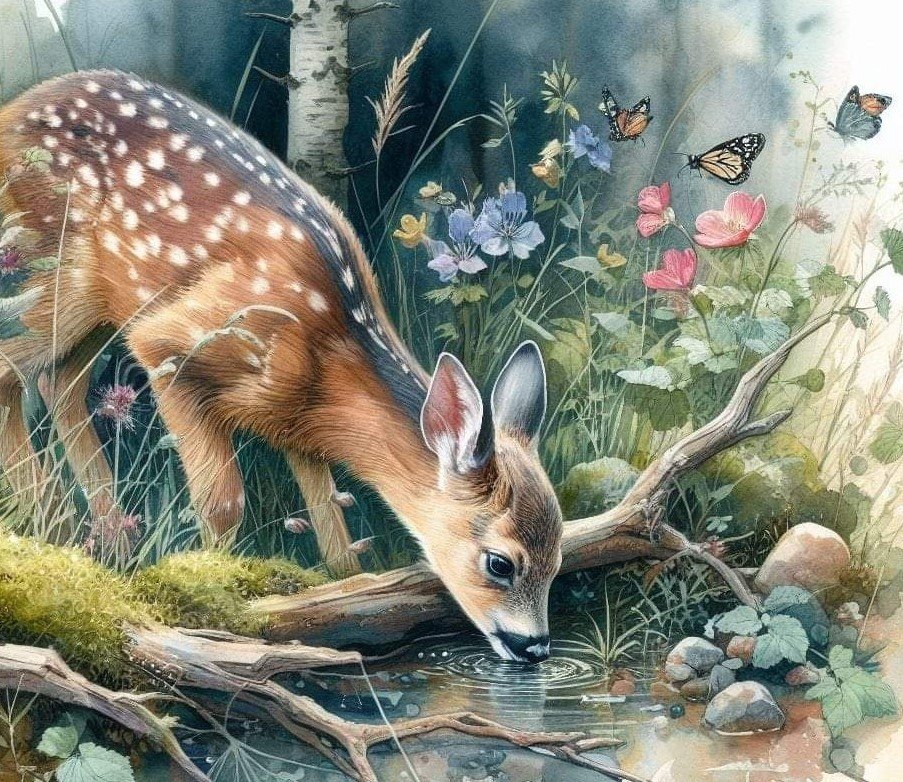Теги: животные, олени, пейзаж, водопад..