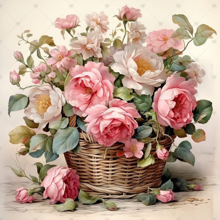 Теги: розы, флора, цветы, душистые розы, винтаж, корзина, розочки.