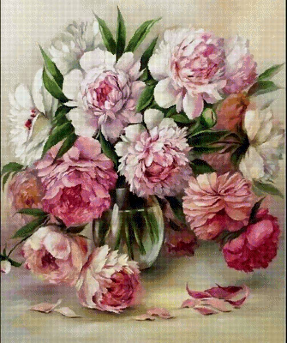 Схема вышивки «Нежные пионы» Нежные пионы