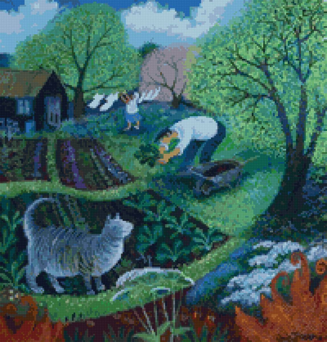 Схема вышивки «Лето дача природа кошка» (№2841394)