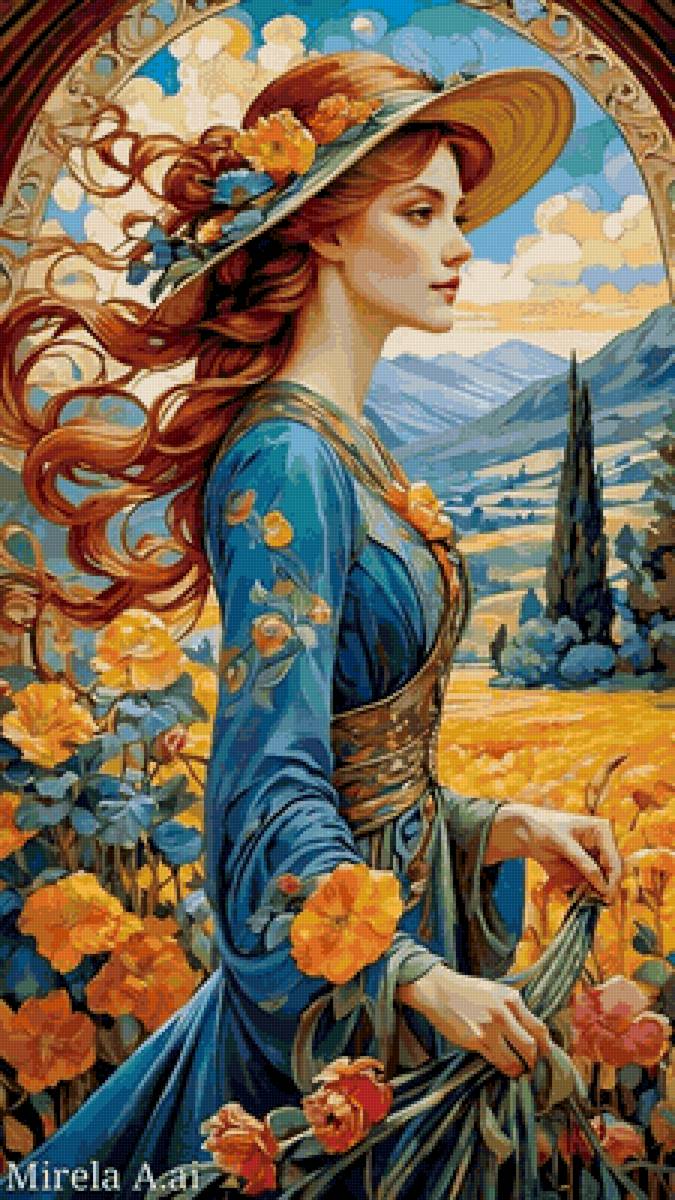 Схема вышивки «Дама в шляпе» Дама в шляпе