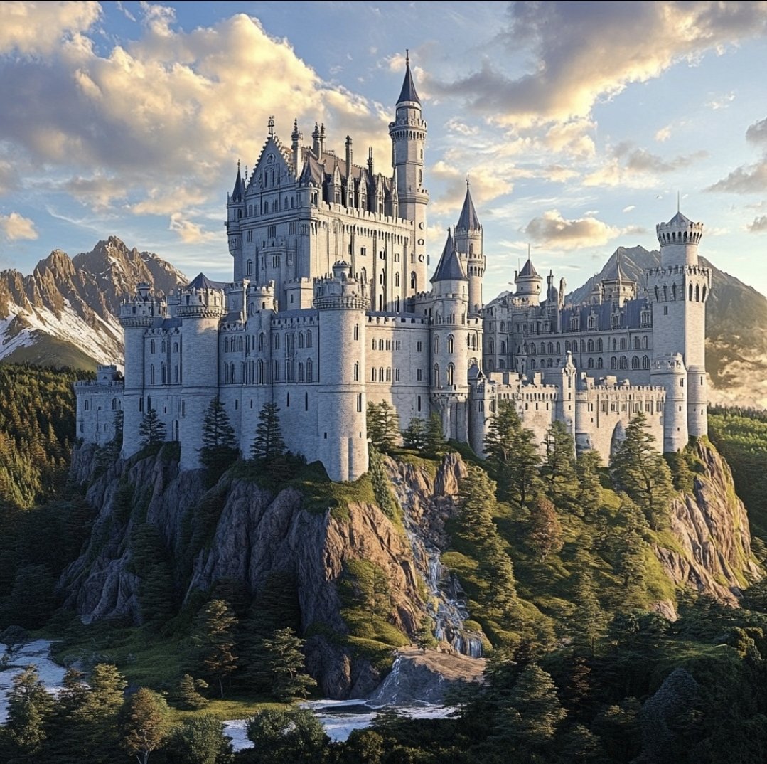 Теги: замок, архитектура, птицы, пейзаж, вода, животные. волк, сказка.