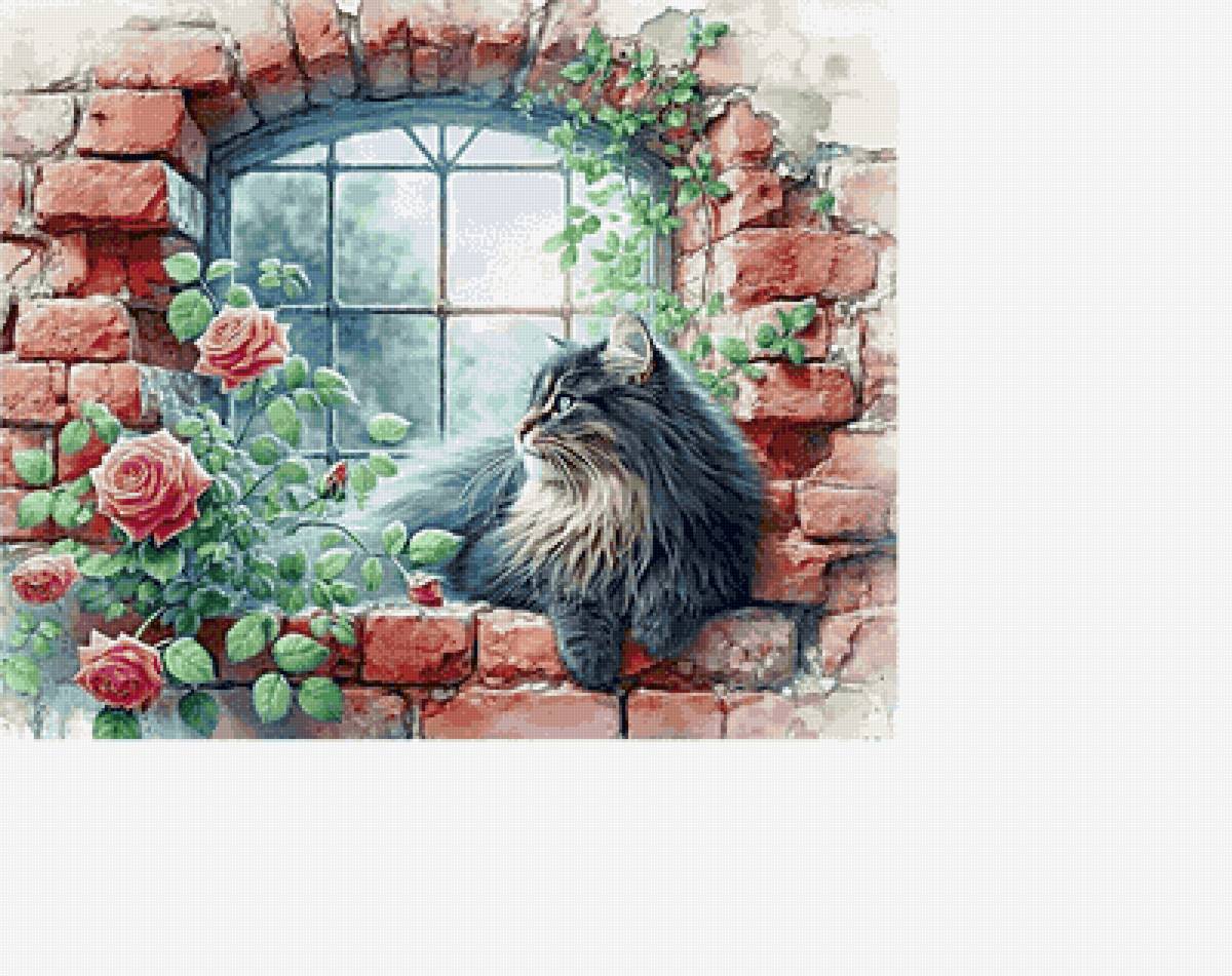 Схемы вышивки, похожие на «Кошка на окошке.» (№2895816) по сюжету