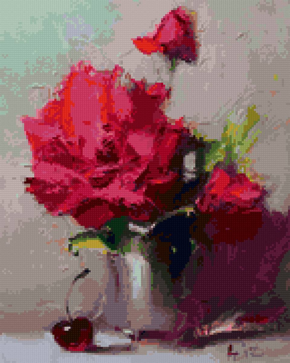 Теги: розы, цветы, букет, ваза, живопись, натюрморт.
