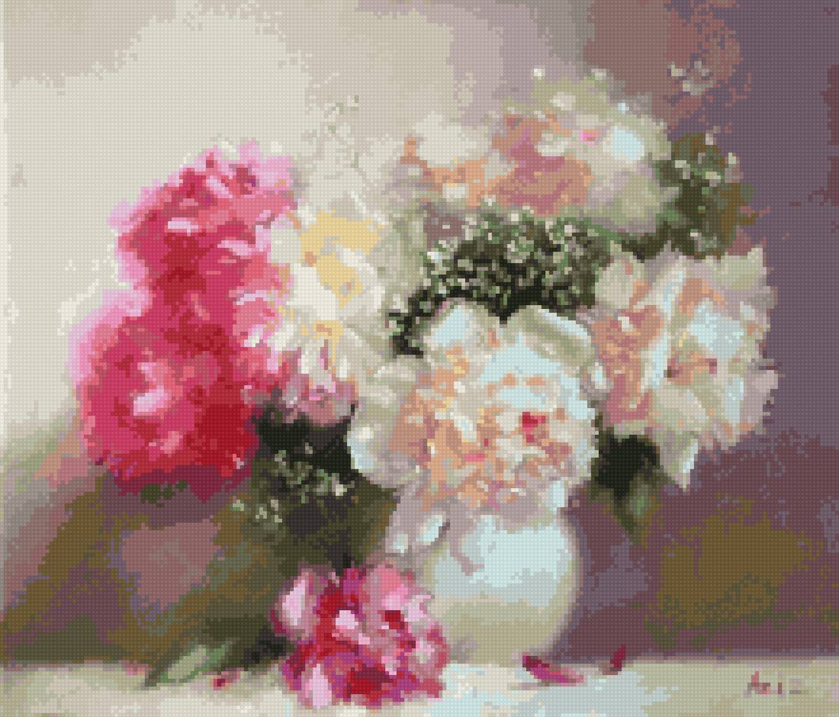 Теги: картина, букет, натюрморт, красота, цветы, ваза, розы.