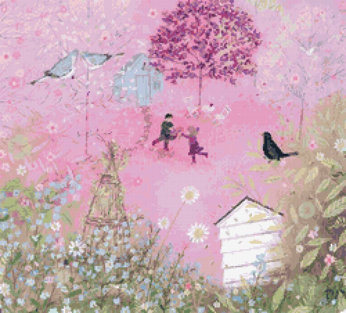 Теги: сад, пейзаж, бабочки, лето, птички, качели, цветы, природа.