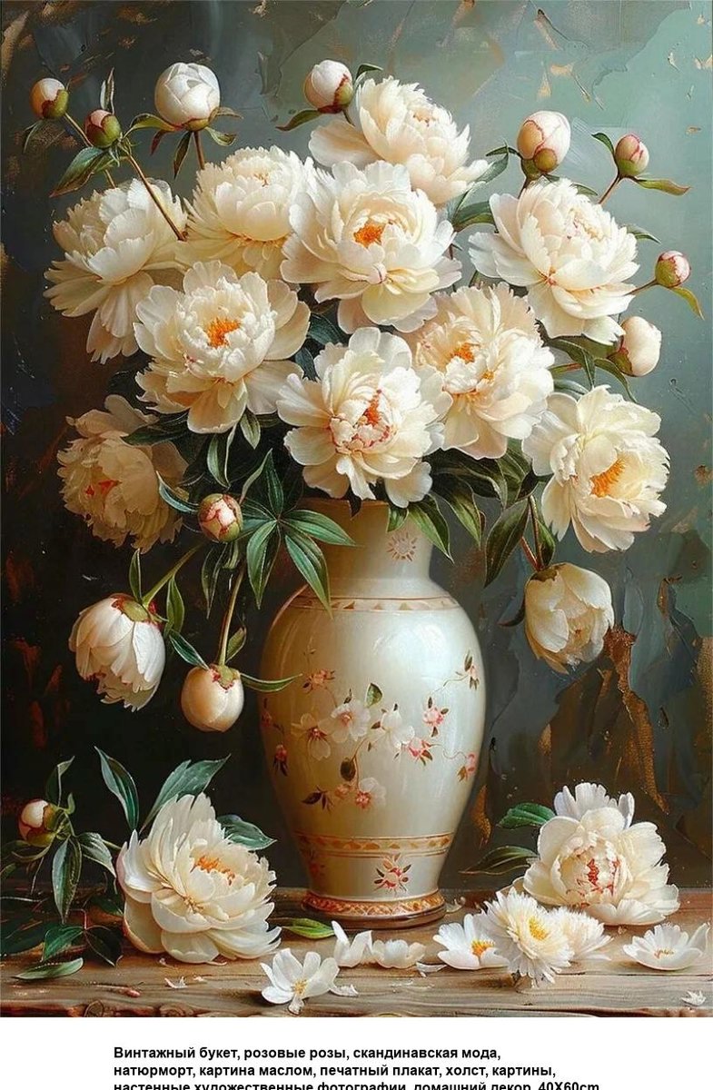 Теги: натюрморт, пионы, букет, нежность, ваза, цветы, живопись.